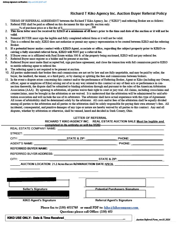 Directions: From Carrollton take SR-43 north then turn left onto Bacon Rd. NW to auction location. Watch for KIKO signs.