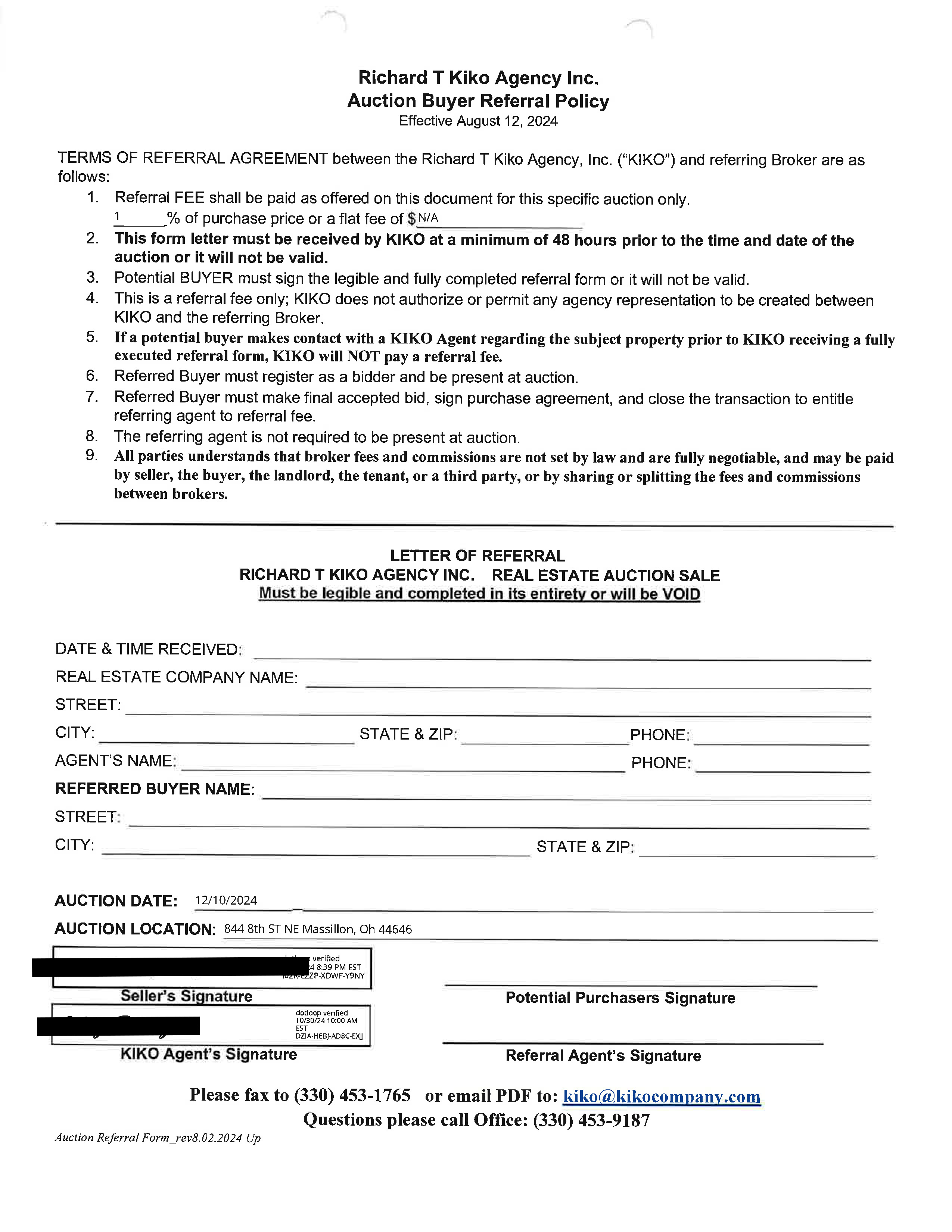 10% down auction day, balance due at closing. A 10% buyer’s premium will be added to the highest bid to establish the purchase price. Any desired inspections must be made prior to bidding. All information contained herein was derived from sources believed to be correct. Information is believed to be accurate but not guaranteed.