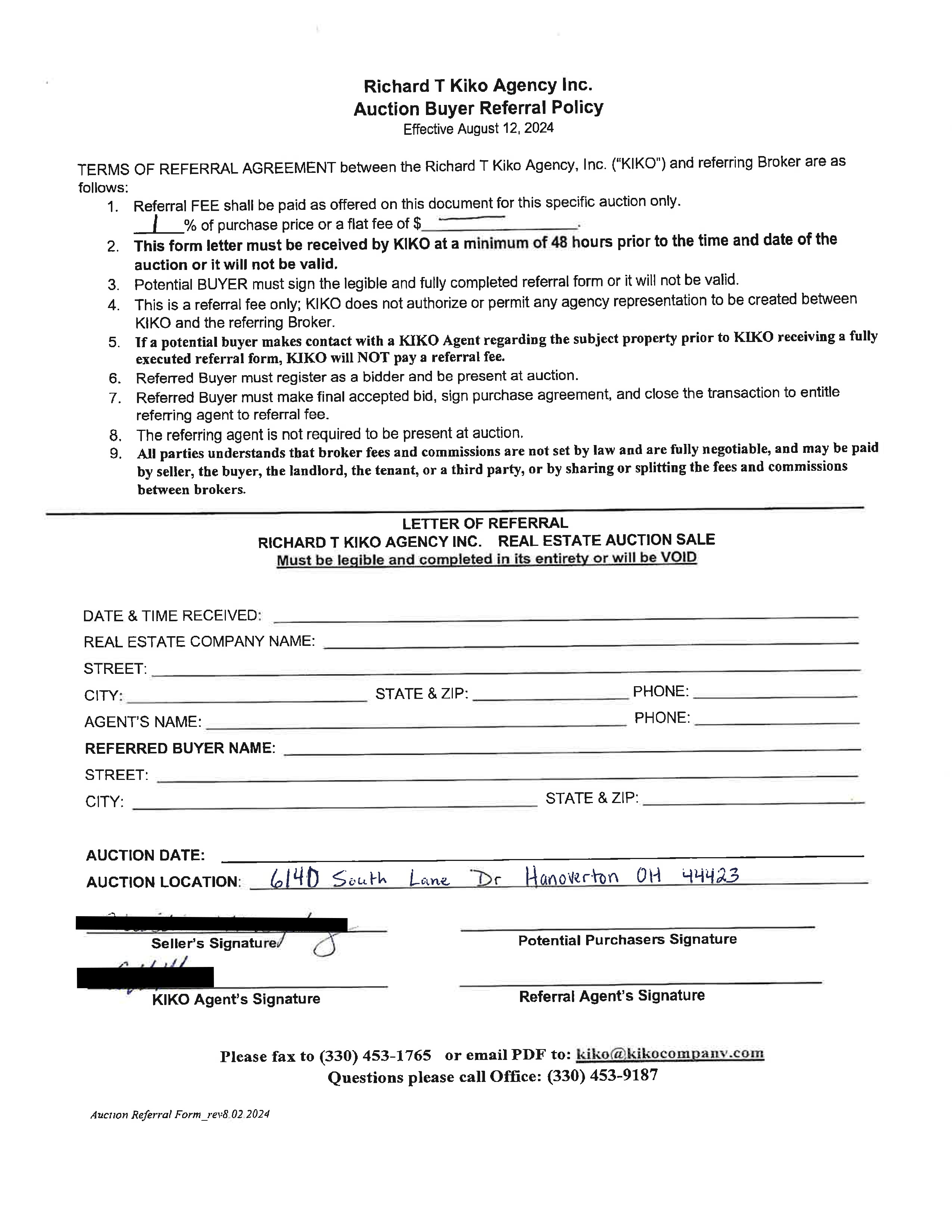 10% down auction day, balance due at closing. A 10% buyer’s premium will be added to the highest bid to establish the purchase price. Any desired inspections must be made prior to bidding. All information contained herein was derived from sources believed to be correct. Information is believed to be accurate but not guaranteed. Property to be sold as Separate Parcels and not to be offered as an Entirety.