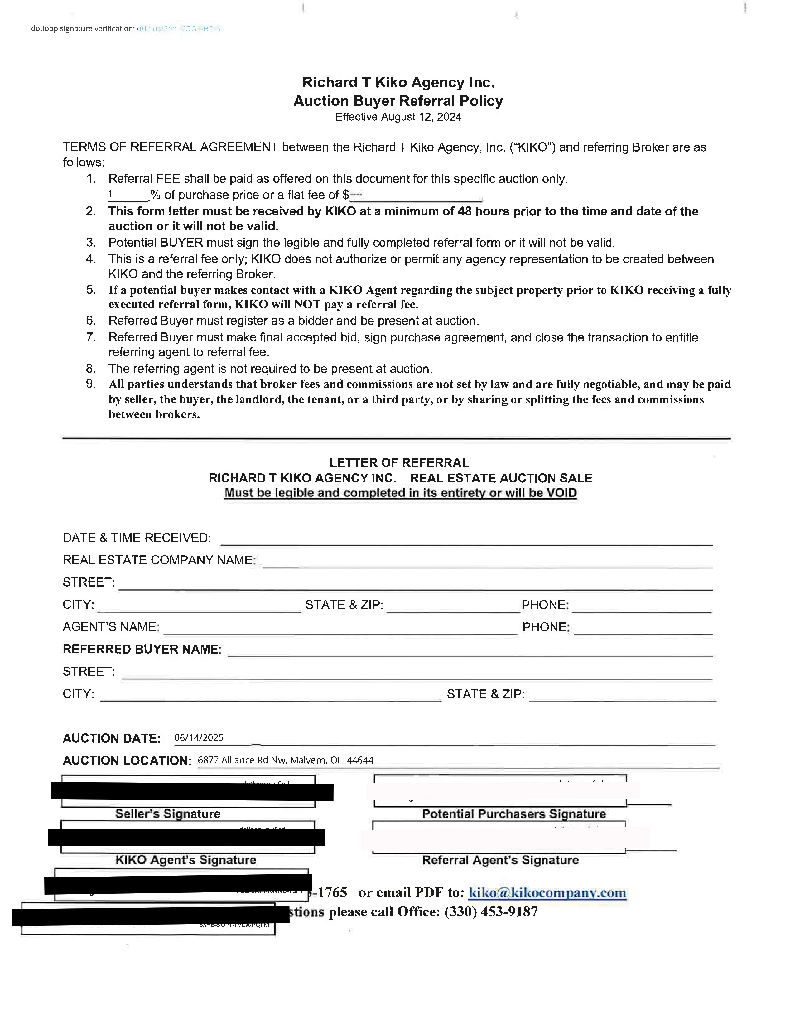 Directions: Take SR 183/SR 43 (Alliance Rd.) west of Malvern or east of Waynesburg to property. Watch for KIKO signs.