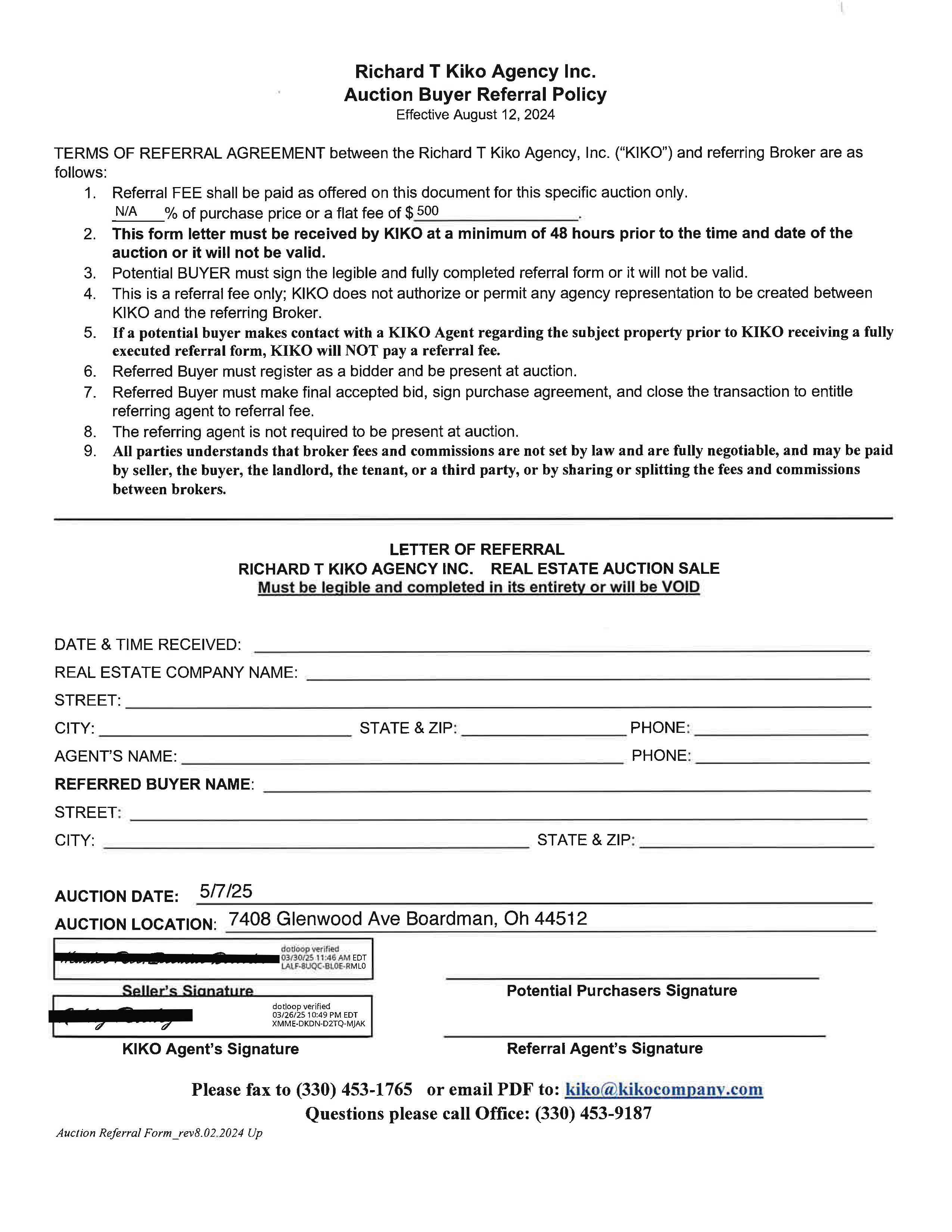 Directions: From State Route 224, take Glenwood Ave. south to property. Watch for KIKO signs. Parking available at Bridge of Hope Church.